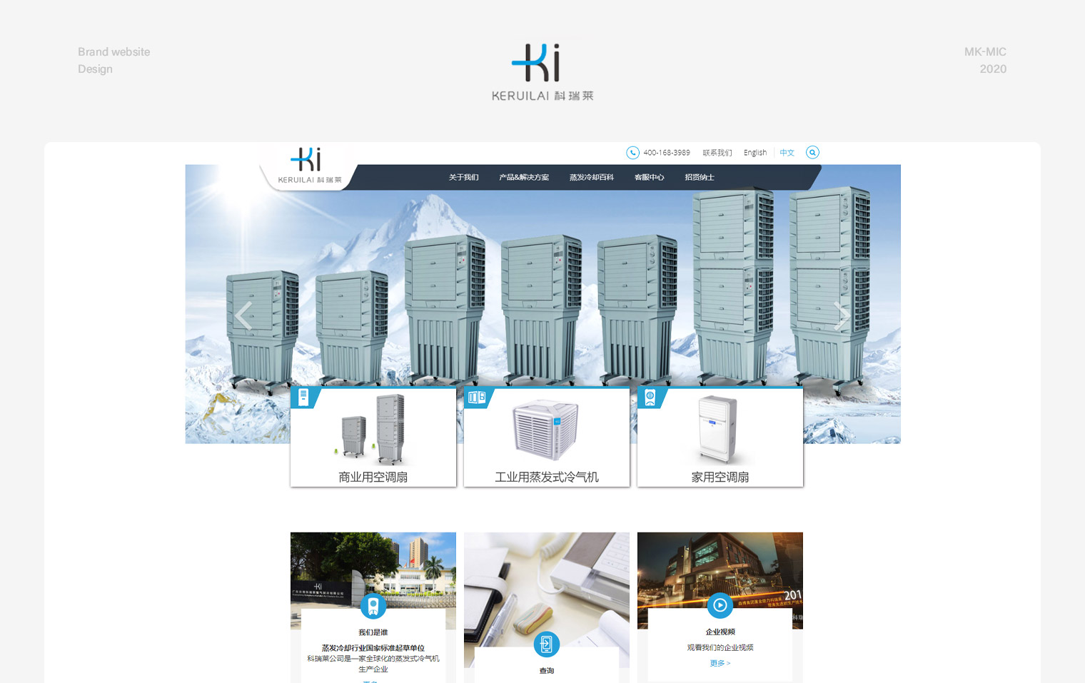 科瑞莱中英双语网站建设,网站采用极简式的风格设计,结合了国外网站的设计风格,让网站看起来别树一帜。客户主要做冷气机研发,网站在栏目的排布以及页面布局清晰的展示出了客户的强大实力背景以及专业的产品领域。通过解决方案与产品的结合带动了用户更加深入的了解客户的产品。